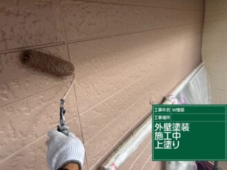 外壁の上塗り施工中